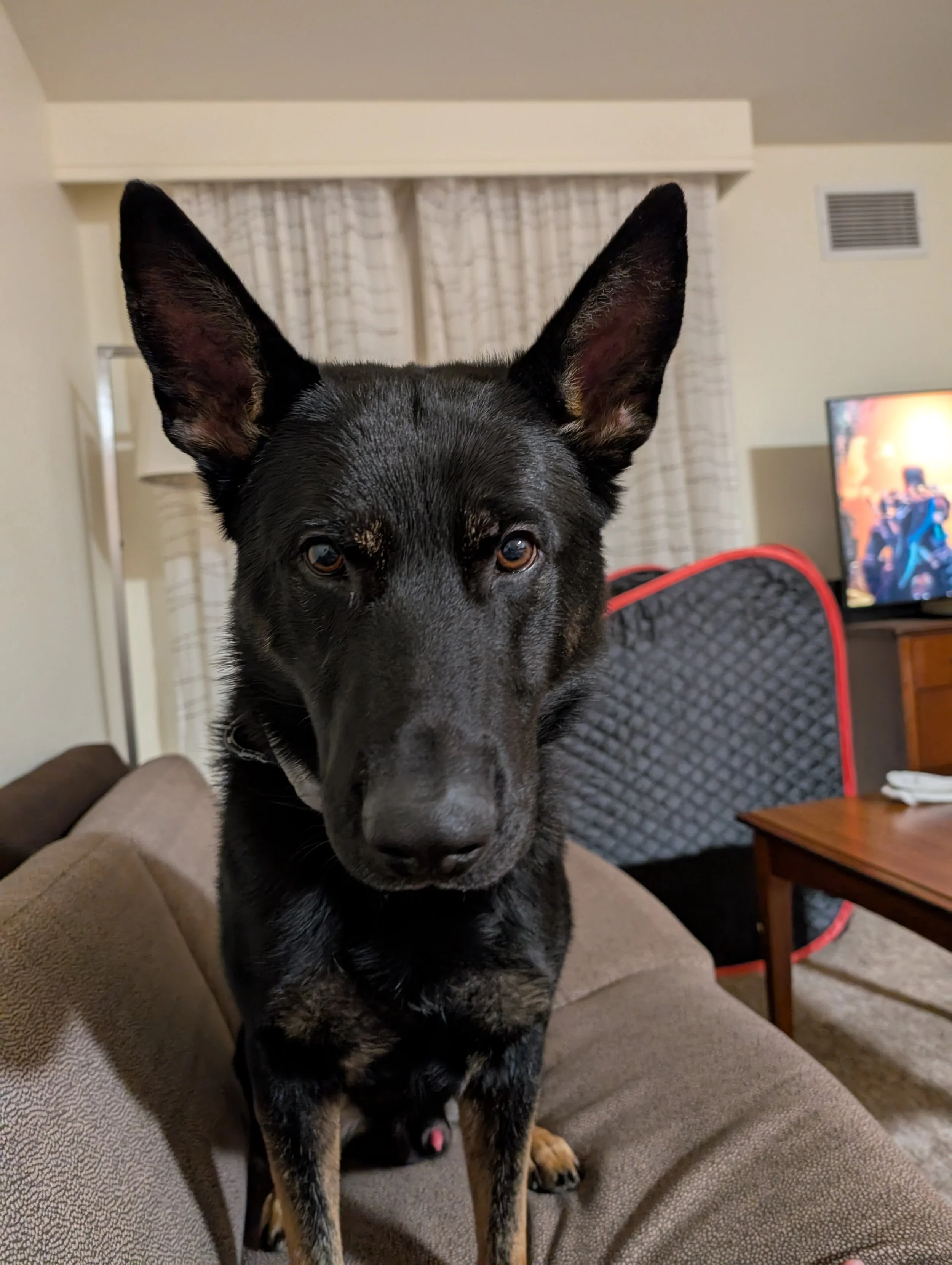 Moose is a German Shepherd and Belgian Malinois cross from the Czech Republic. Chris and Moose have been paired since June 2023 and you can find Moose constantly playing ball or carrying around his stuffies everywhere he goes.
